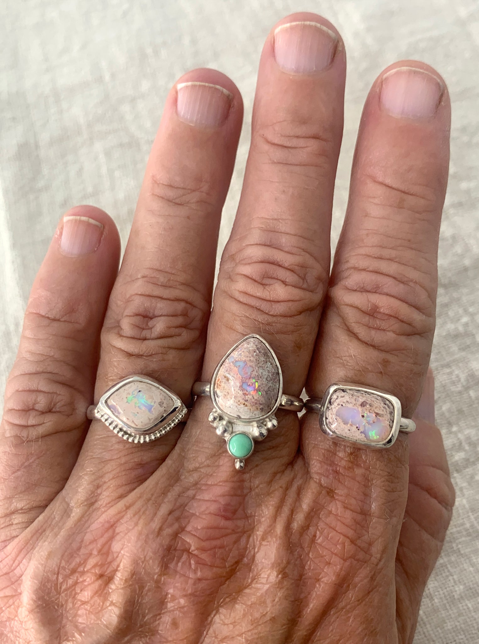 Materials: Natural Mexican Opal, .925 Sterling Silver, .999 Fine Silver